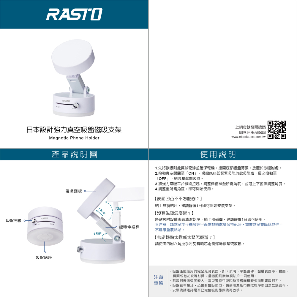 RASTO RN6 日本設計強力真空吸盤磁吸支架