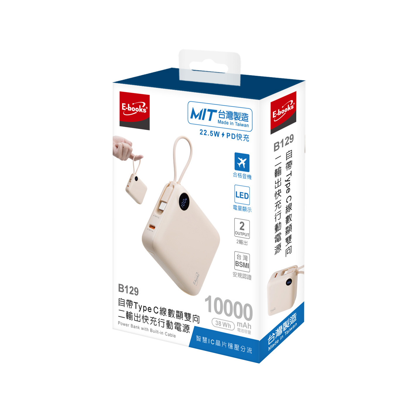 E-books B129 【台灣製造】自帶Type C線數顯雙向二輸出快充行動電源