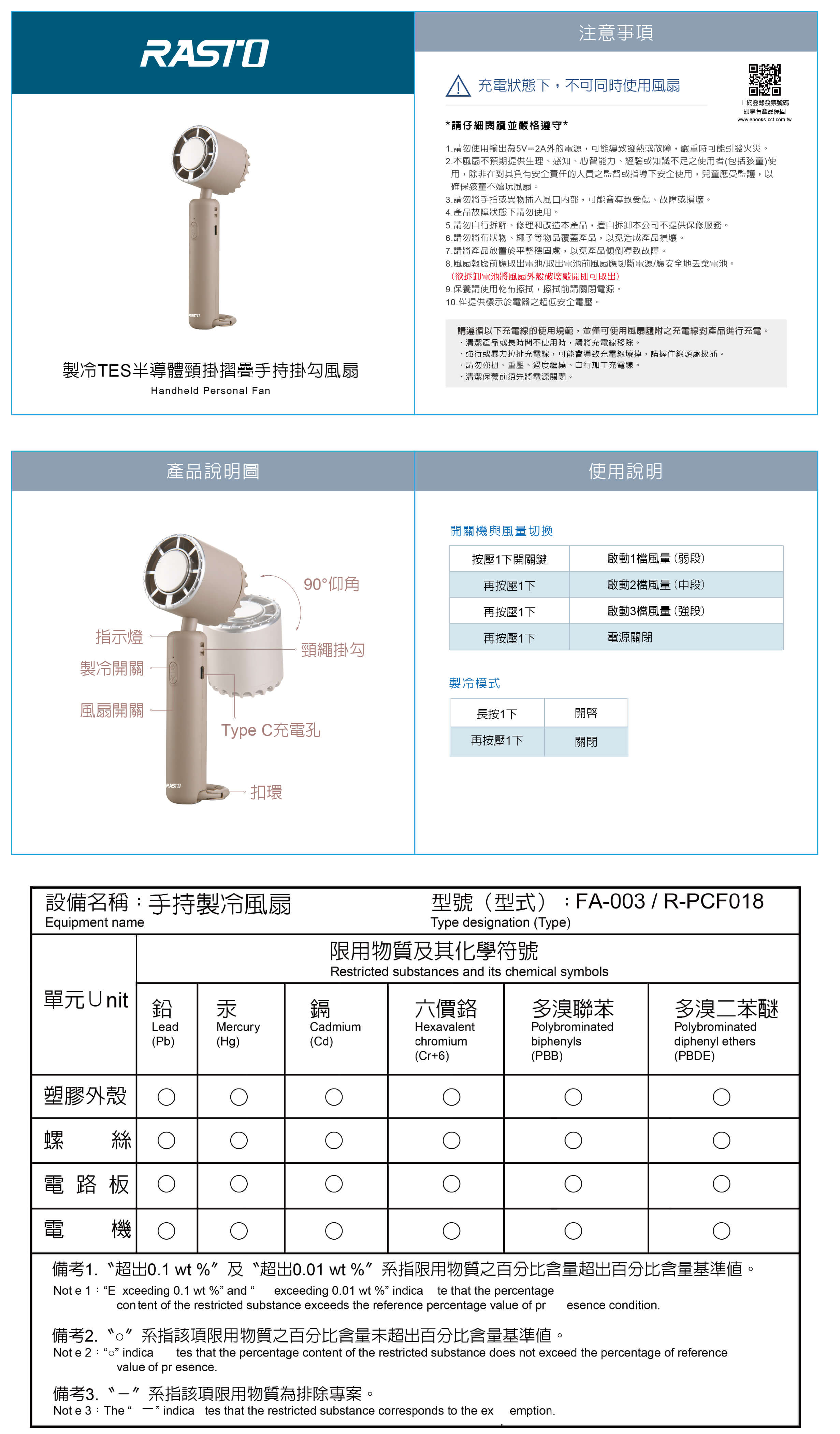 RASTO RK18【台灣製造】製冷TES半導體頸掛摺疊手持掛勾風扇