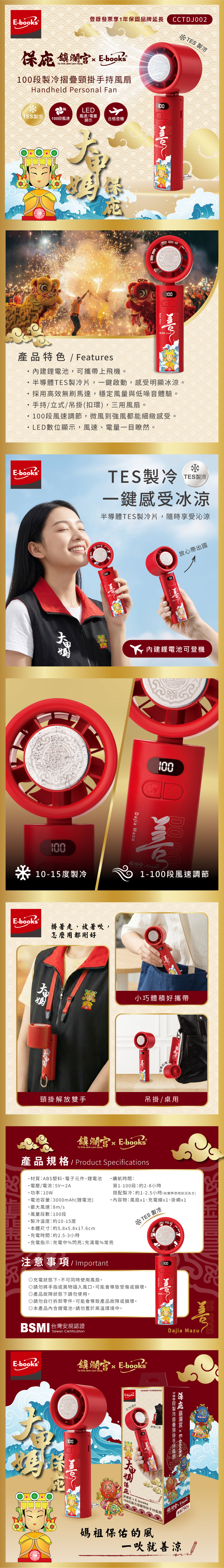 保庇鎮瀾宮 x E-books 100段製冷摺疊頸掛手持風扇