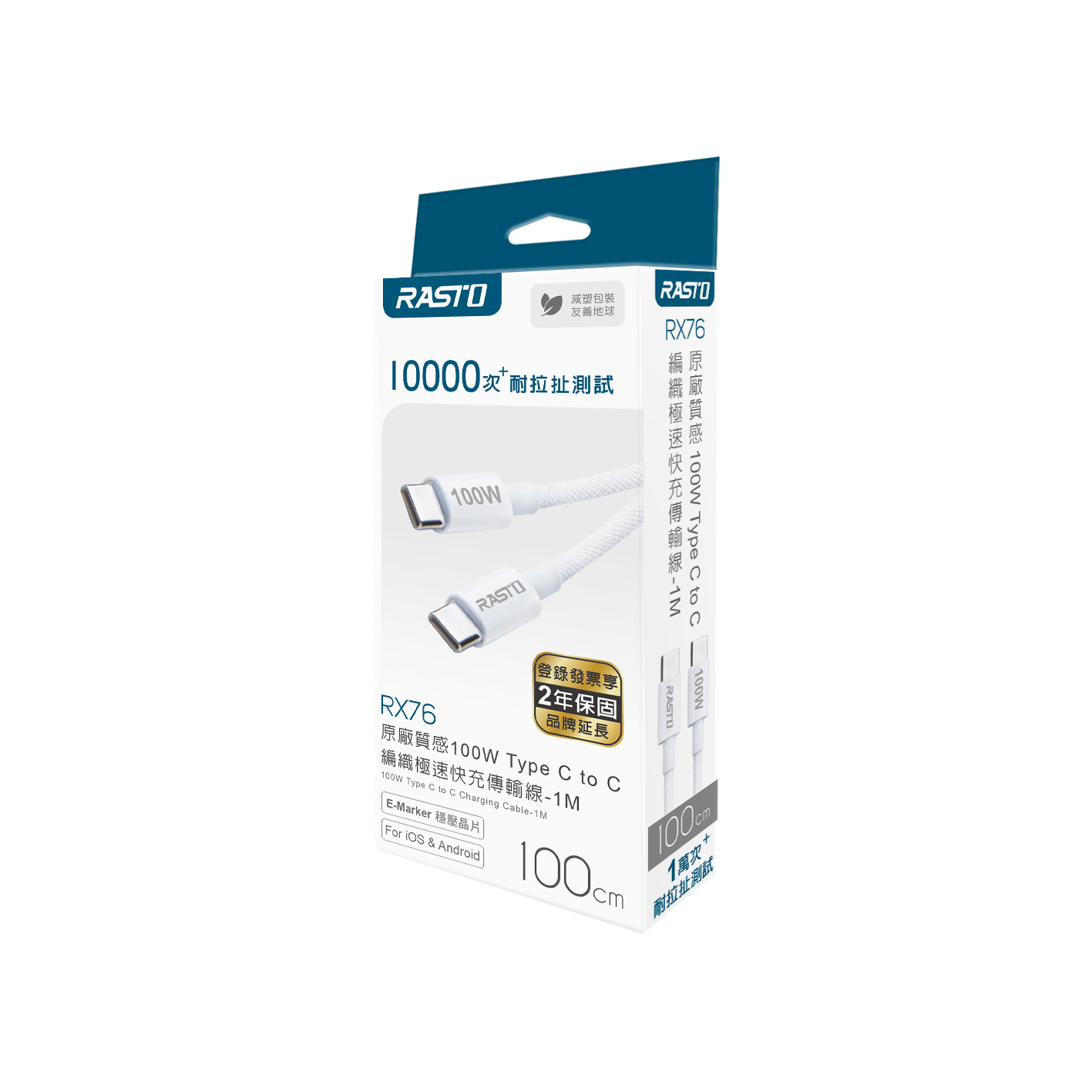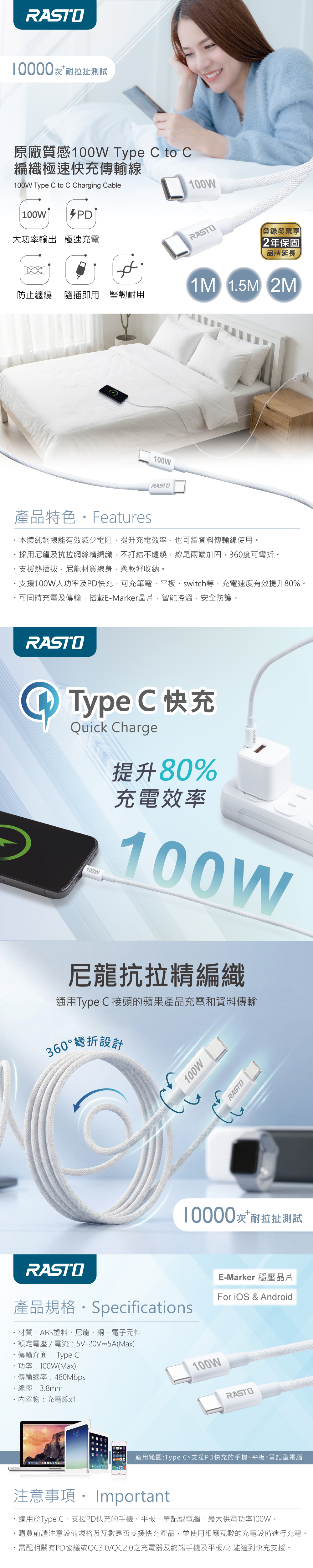 RASTO RX76 原廠質感100W Type C to C 編織極速快充傳輸線-1M