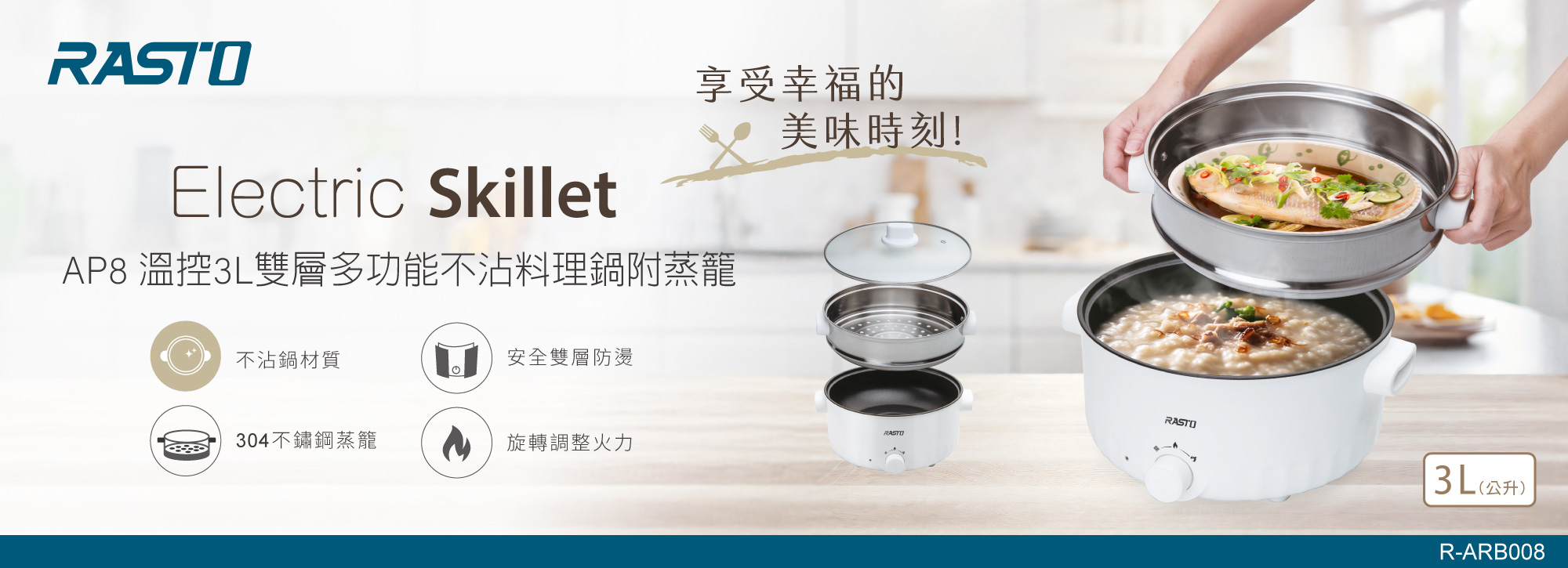 【2025.11】RASTO AP8 溫控3L雙層多功能不沾料理鍋附蒸籠