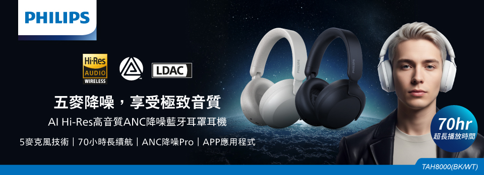【2026.03】PHILIPS AI Hi-Res高音質ANC降噪藍牙耳罩耳機-TAH8000