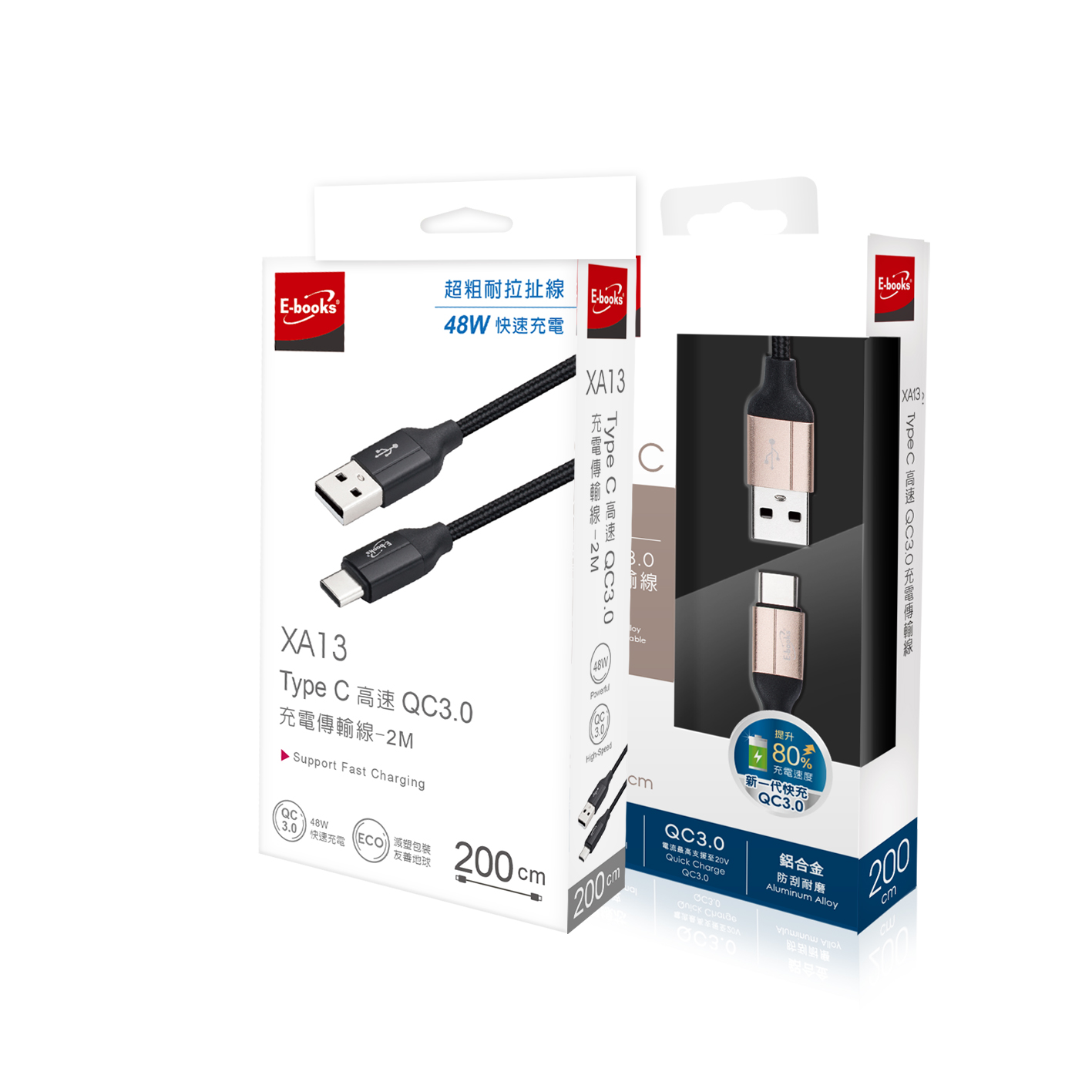 E-books XA13 Type C 高速QC3.0充電傳輸線2M