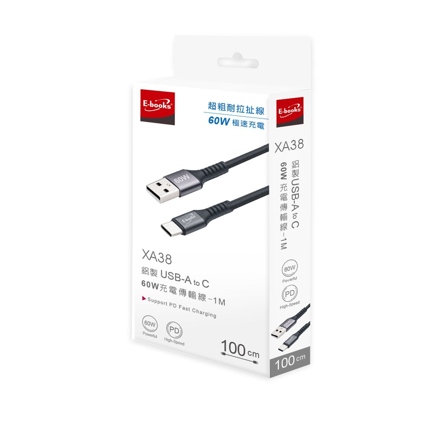 E-books XA38 鋁製USB-A to C 60W充電傳輸線-1M