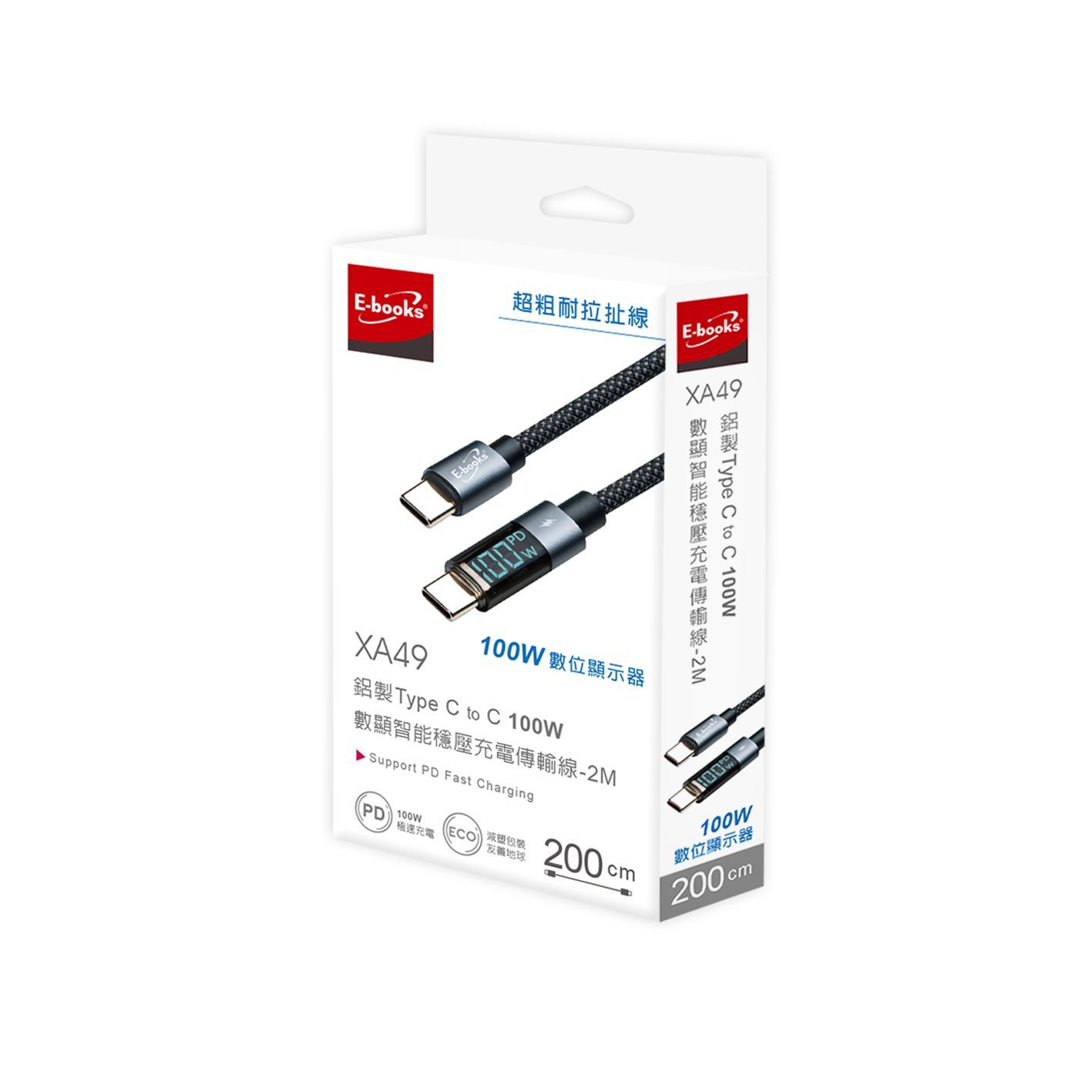 E-books XA49 鋁製Type C to C 100W數顯智能穩壓充電傳輸線-2M