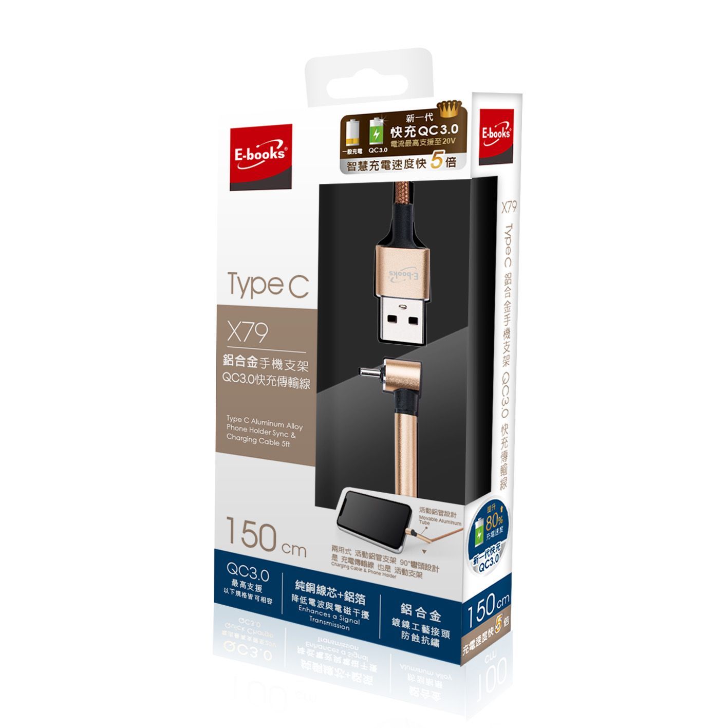 E-books X79 Type C 鋁合金手機支架QC 3.0 快充傳輸線1.5M