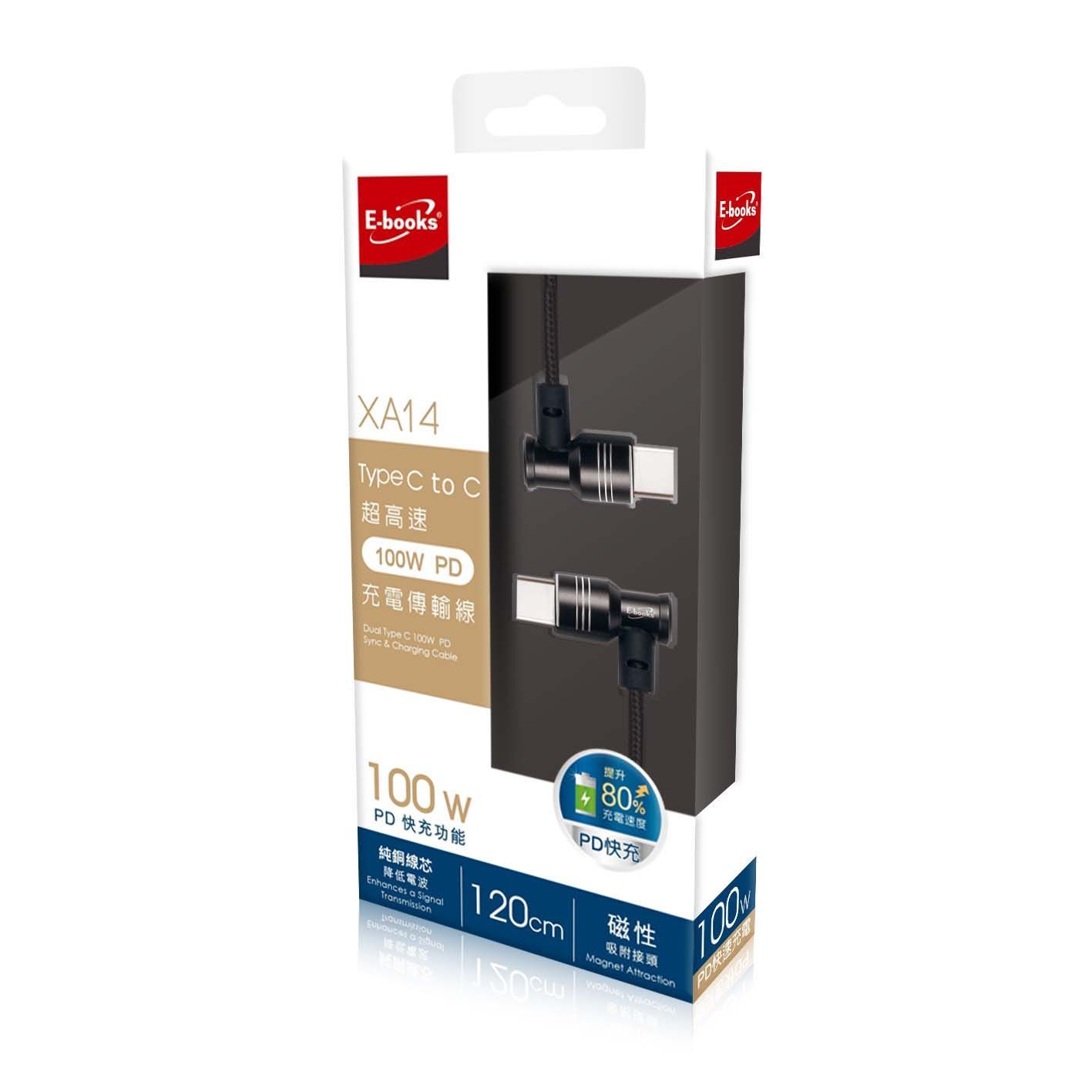 E-books XA14 Type-C to C超高速100W PD充電傳輸線1.2M