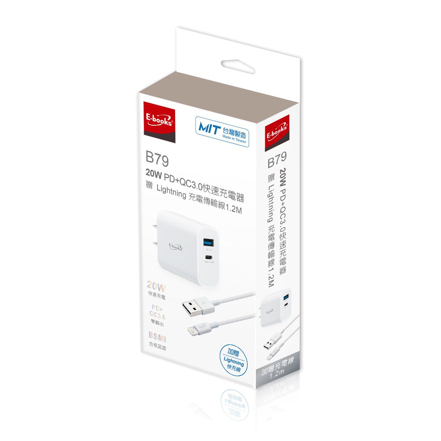 E-books B79 【台灣製造】20W PD+QC3.0快速充電器贈 Lightning 充電傳輸線1.2M