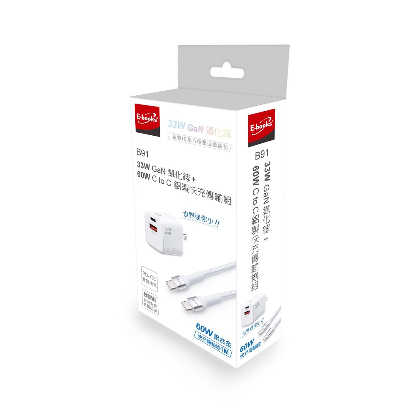 E-books B91 33W GaN氮化鎵+ 60W C to C 鋁製快充傳輸組