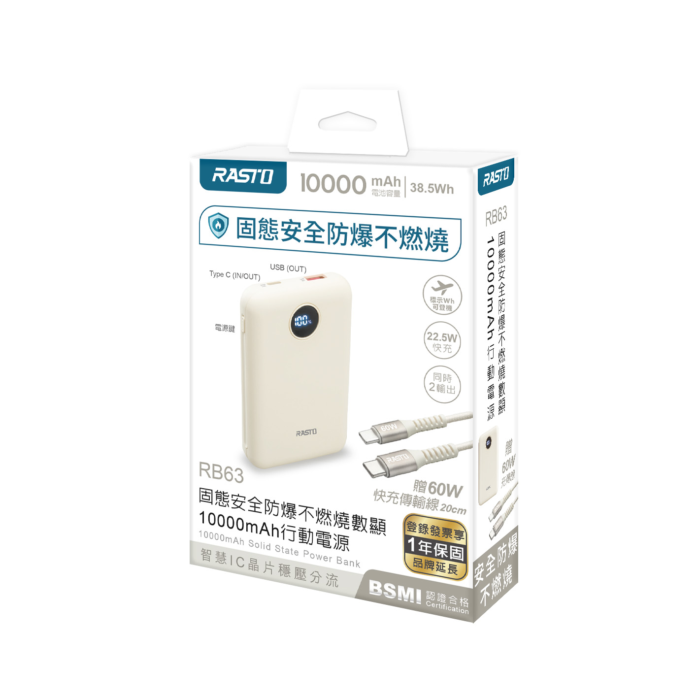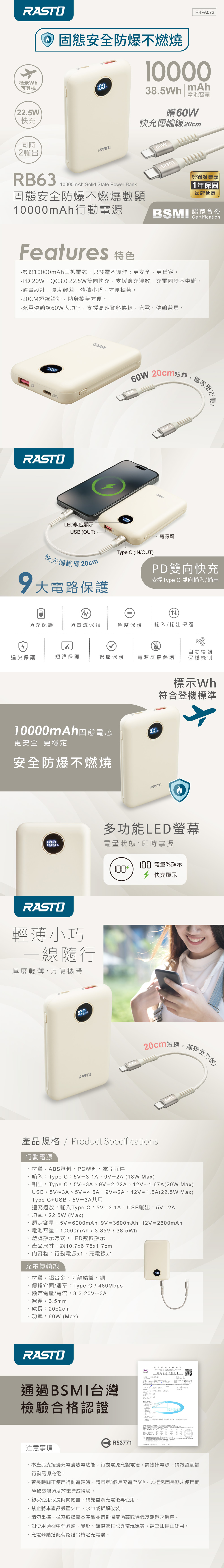 RASTO RB63 固態安全防爆不燃燒數顯10000mAh行動電源