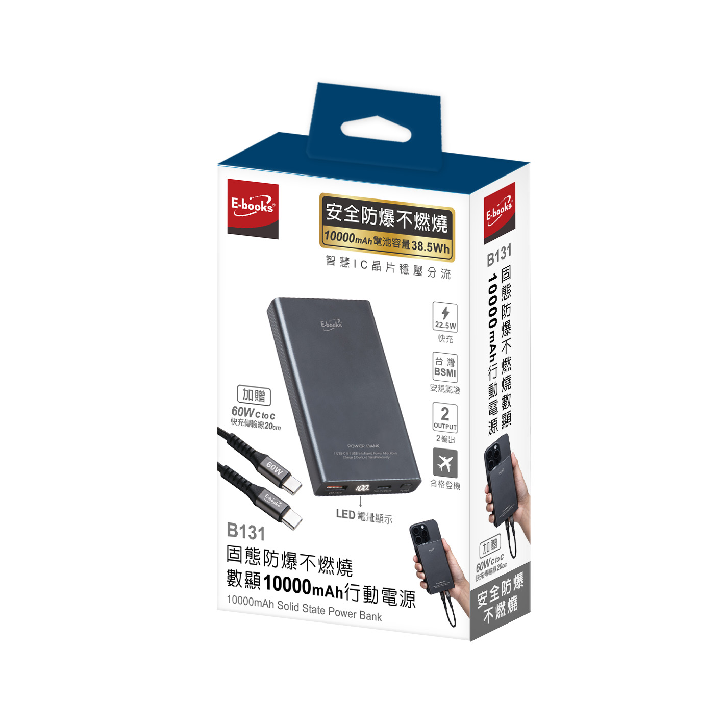 E-books B131 固態防爆不燃燒數顯10000mAh行動電源