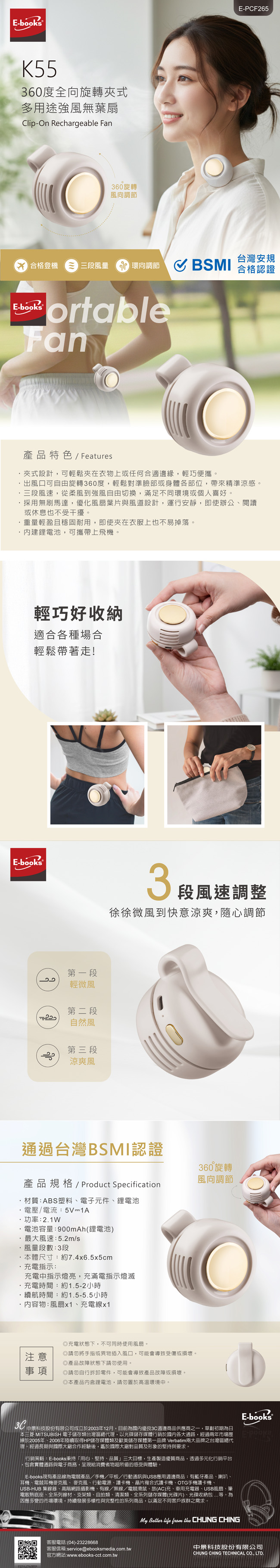 - 三段風速,從柔風到強風自由切換,滿足不同環境或個人喜好。