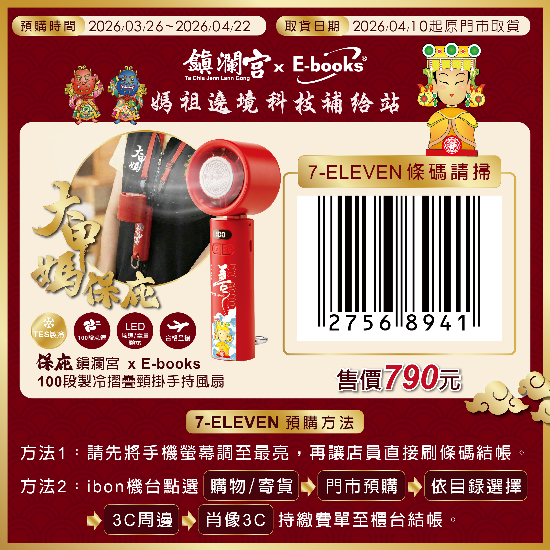 保庇鎮瀾宮 x E-books 100段製冷摺疊頸掛手持風扇
