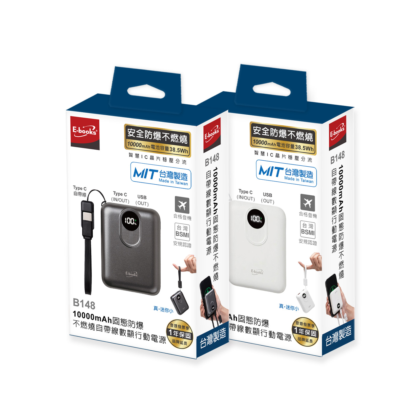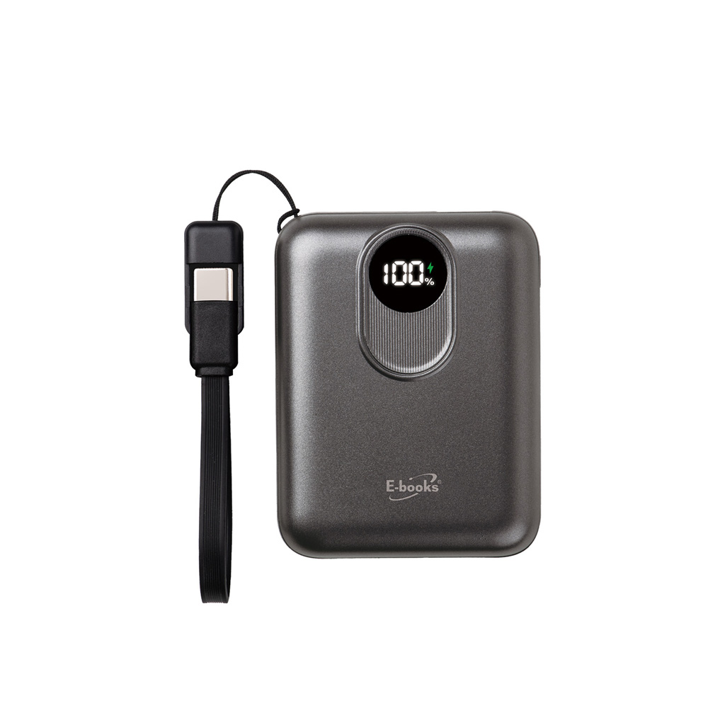 E-books B148 10000mAh固態防爆不燃燒自帶線數顯行動電源