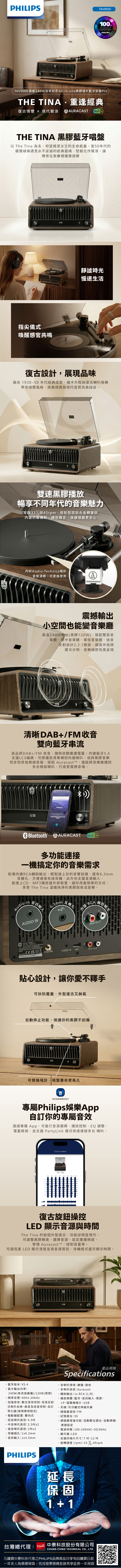 PHILIPS 旗艦240W百年紀念All-in-one黑膠唱片藍牙音箱Pro-TAV9000