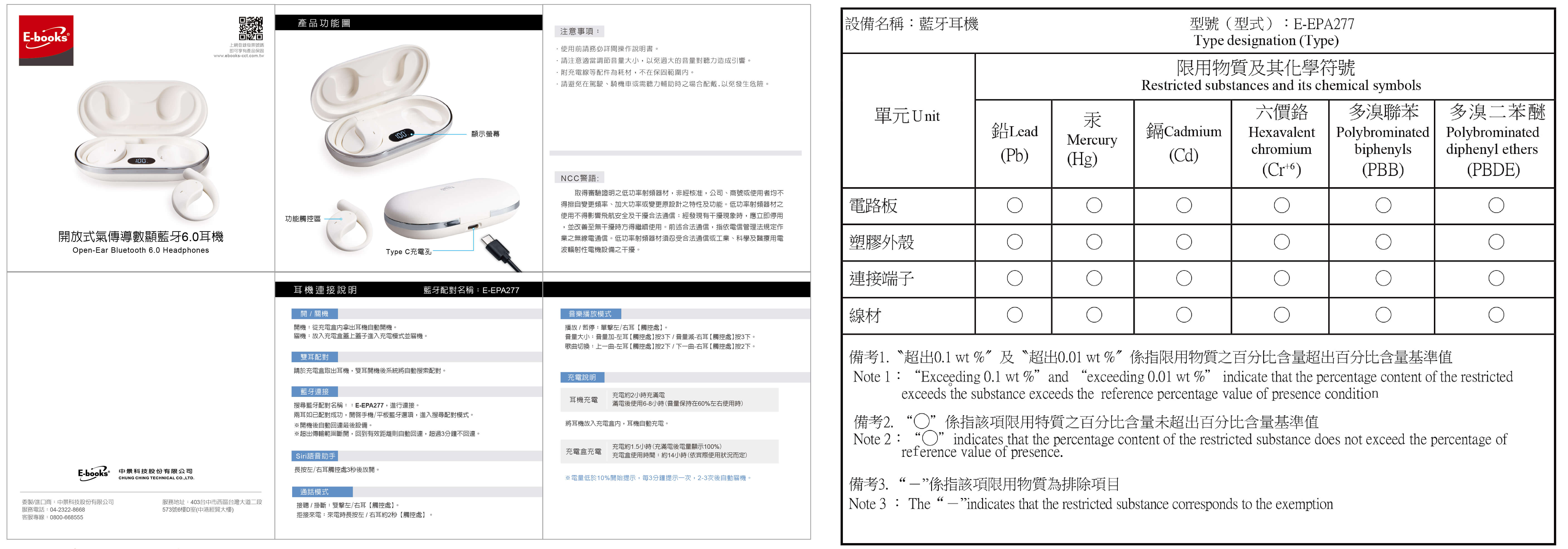 - 充電電壓/電流:5V⎓30mA(耳機);5V⎓300mAh(充電盒)