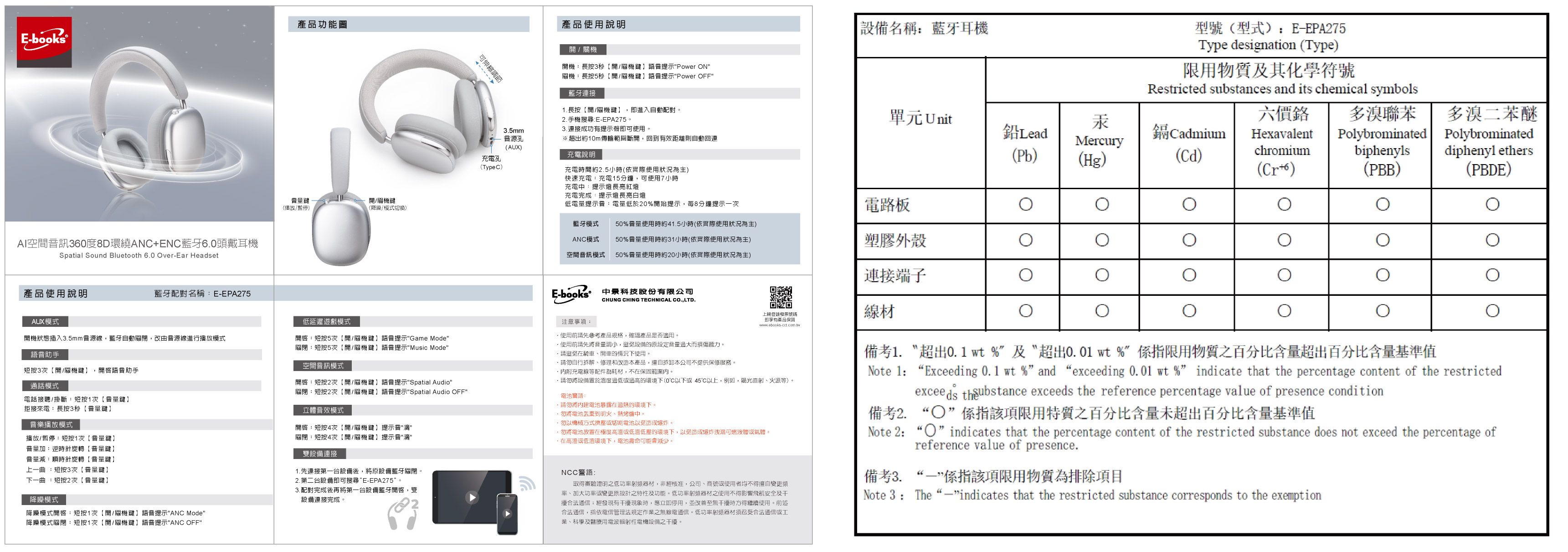 | 09 | E-books SS69 AI空間音訊360度8D環繞ANC+ENC藍牙6.0頭戴耳機 | 2026/01/20 |