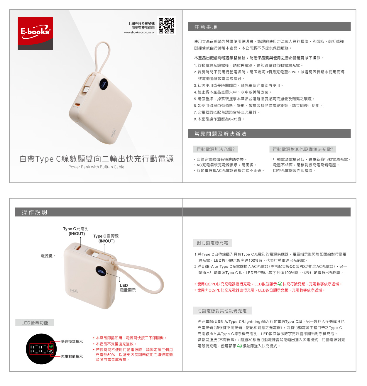 | 07 | E-books B129 【台灣製造】自帶Type C線數顯雙向二輸出快充行動電源 | 2026/01/20 | |||