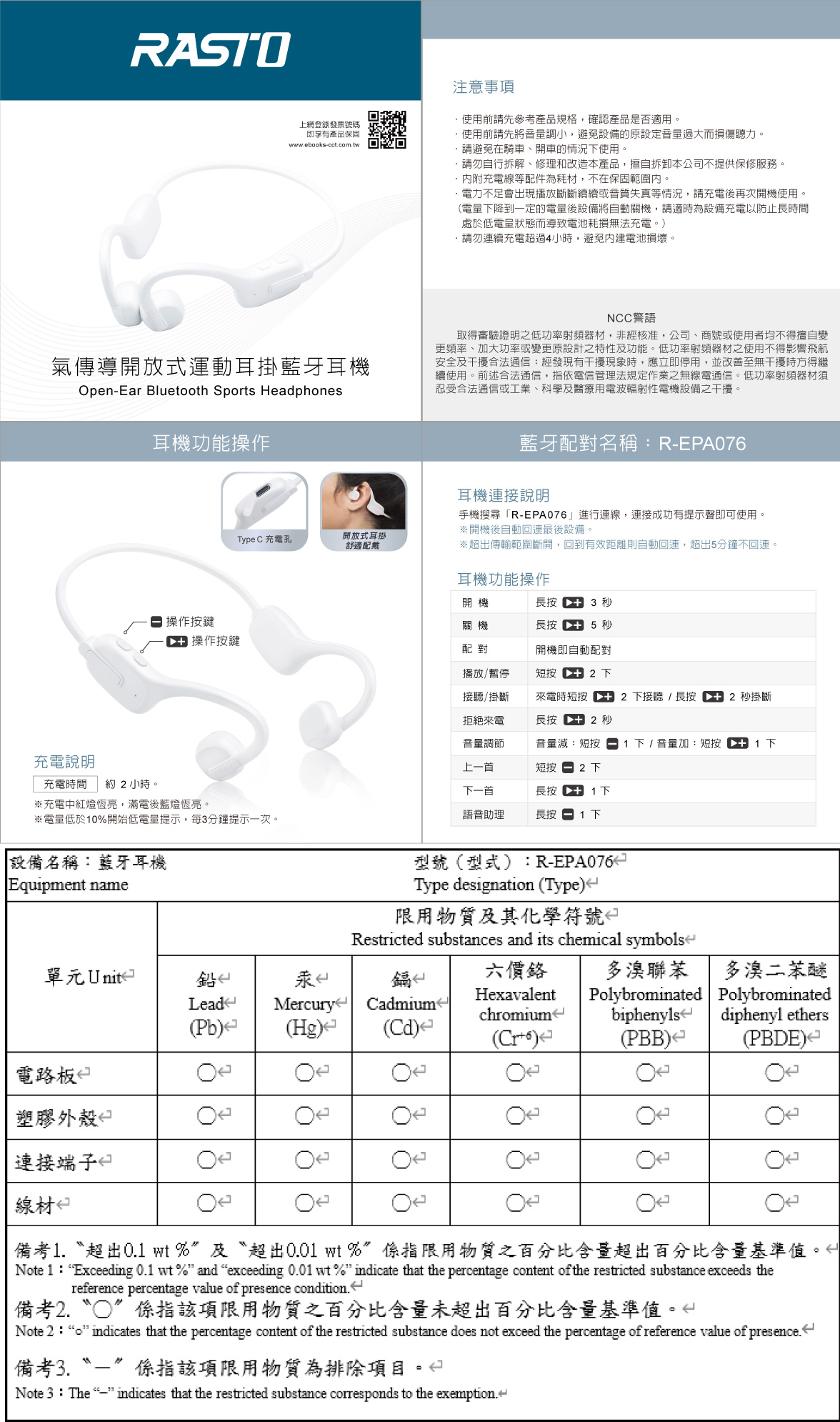 | 06 | RASTO R-RS72 氣傳導開放式運動耳掛藍牙耳機 | 2026/01/20 | |||