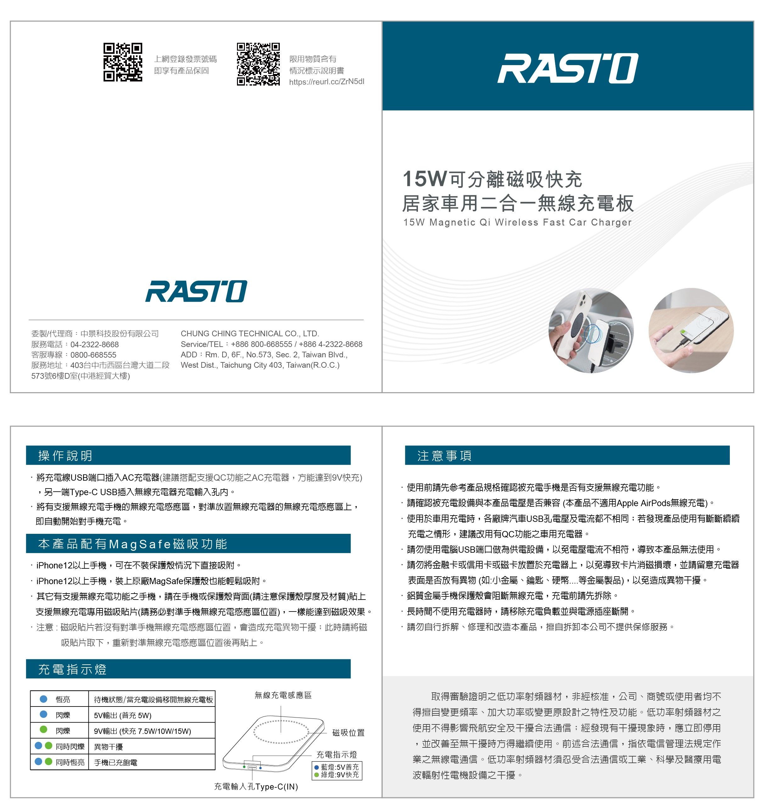| 07 | RASTO RB17【台灣製造】15W可分離磁吸快充居家車用二合一無線充電板 | 2025/07/23 | |||