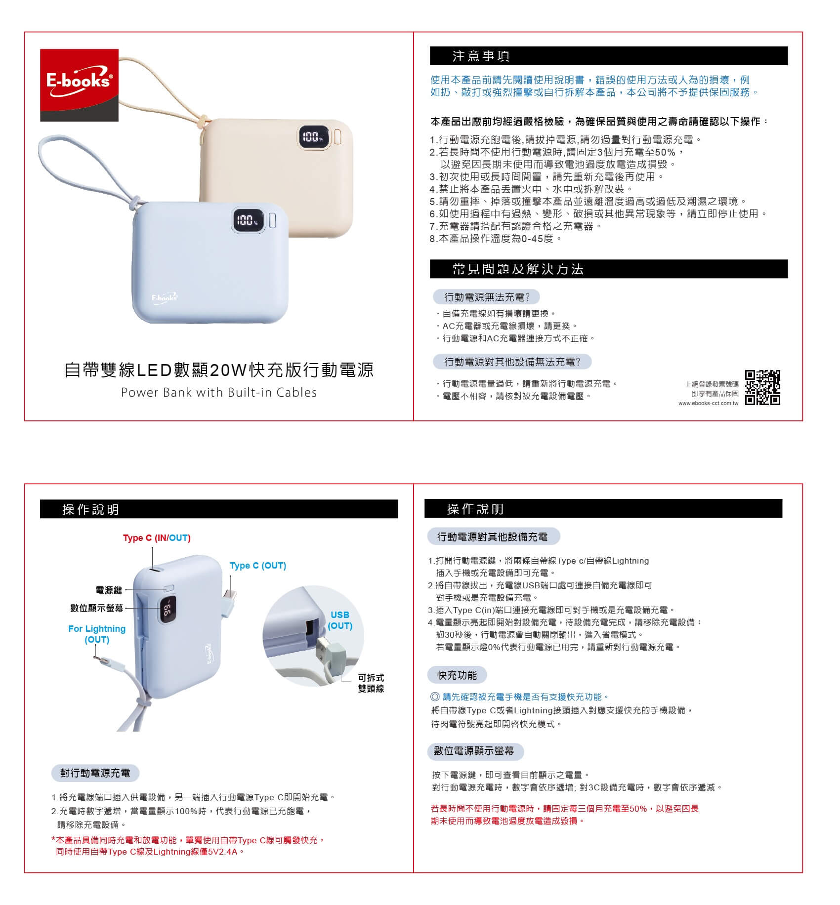 | 05 | E-books B109【台灣製造】20W自帶雙線LED數顯快充行動電源 | 2025/07/23 | |||