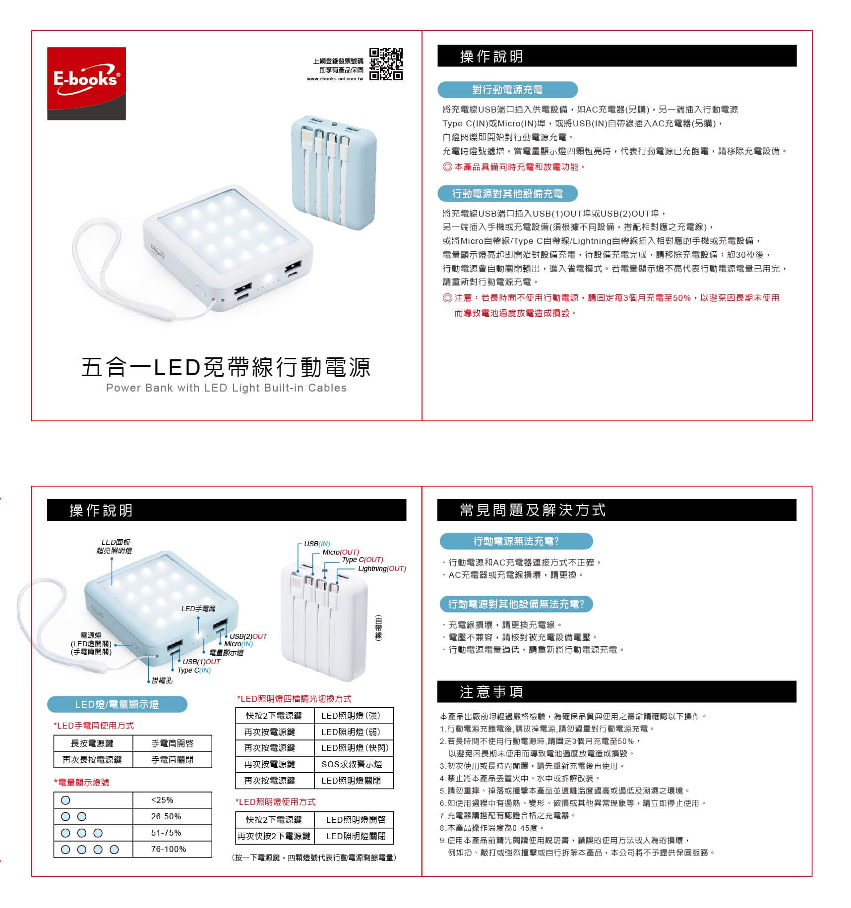 | 08 | E-books B85【台灣製造】五合一LED自帶四線行動電源 | 2025/07/23 | |||