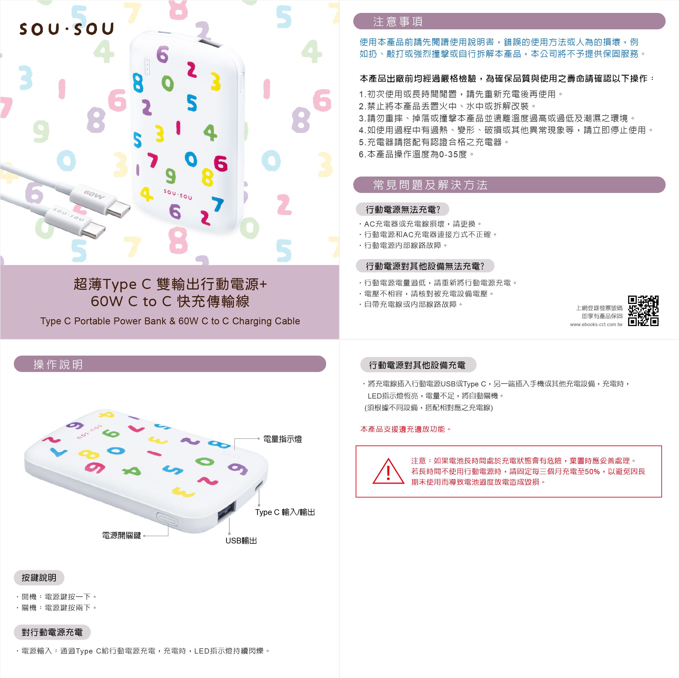 | 02 | SOU.SOU 十數昆 超薄Type C 雙輸出行動電源 + 60W C to C 快充傳輸線 | 2025/10/01 | |||