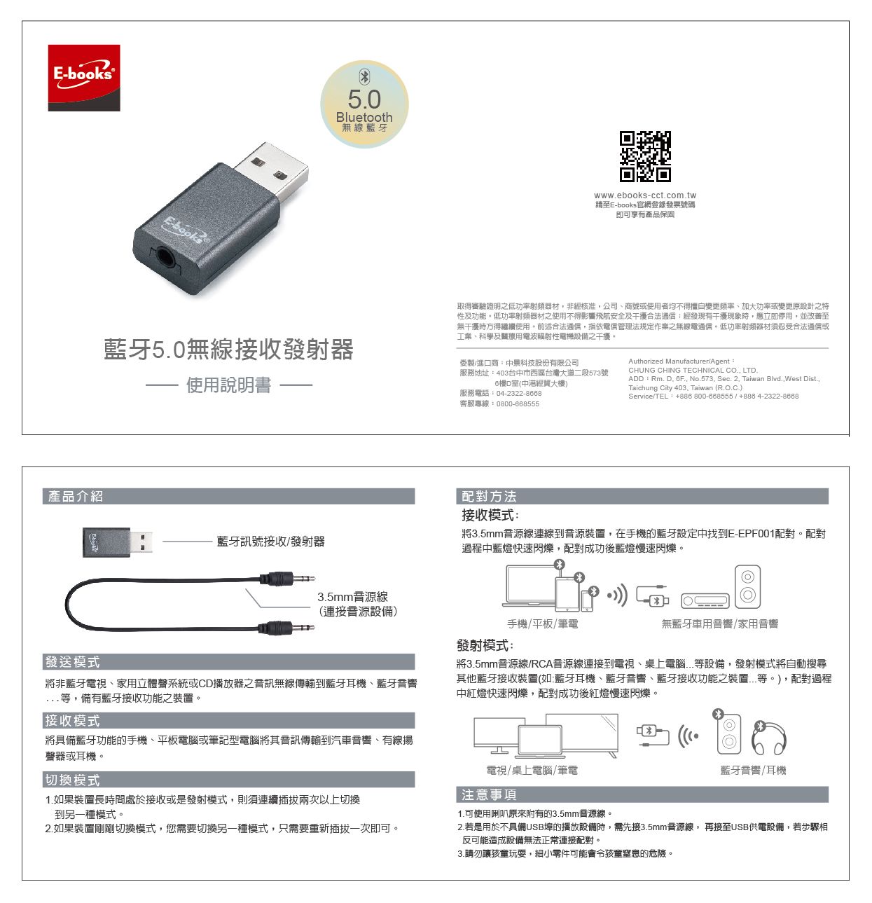 | 01 | E-books Y3 藍牙5.0無線接收發射器 | 2025/07/23 |