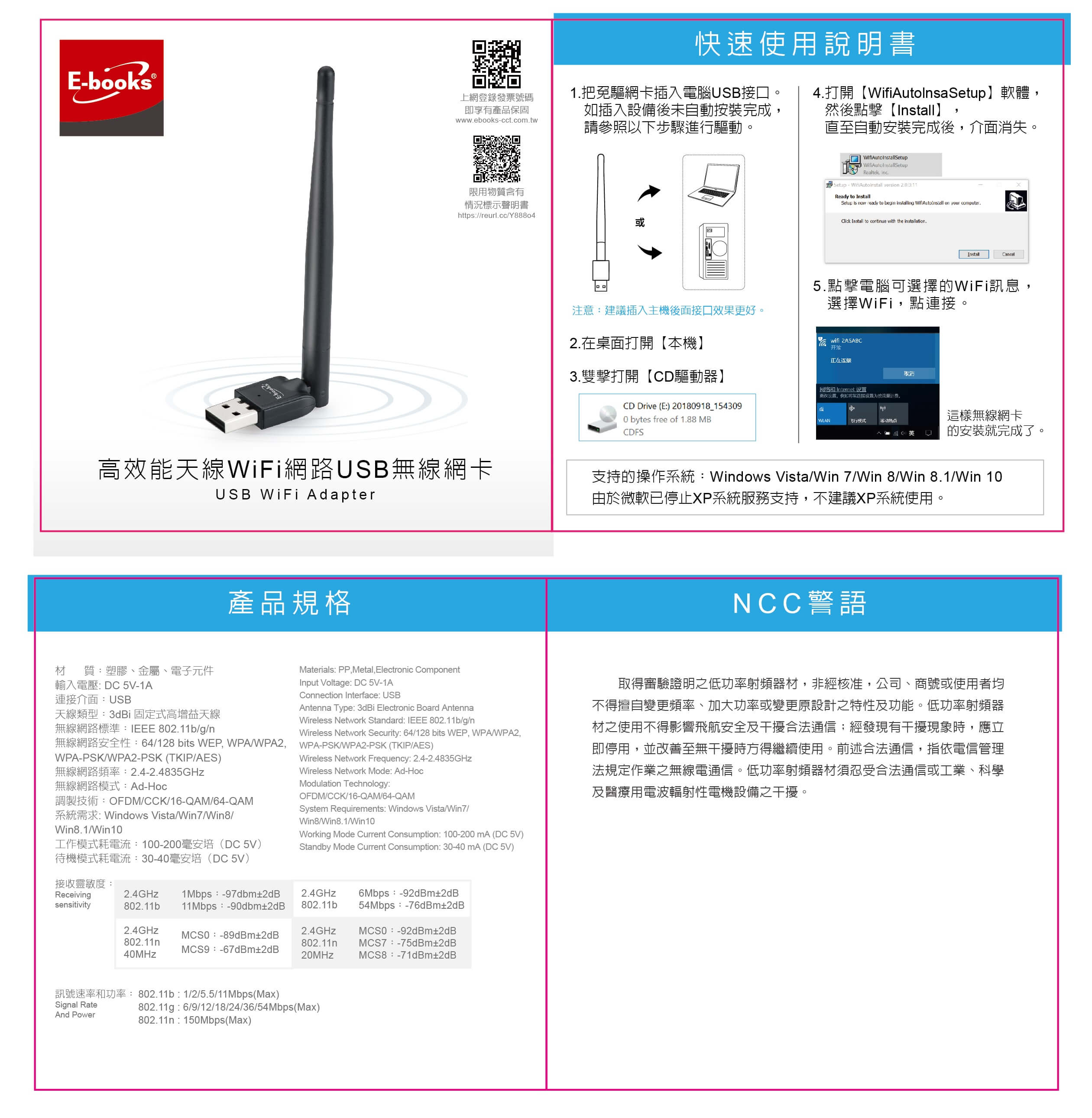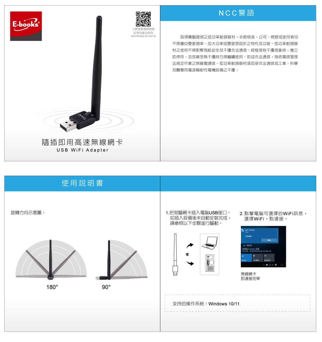 | 01 | E-books WS4 隨插即用高速無線網卡 | 2025/09/18 | |||