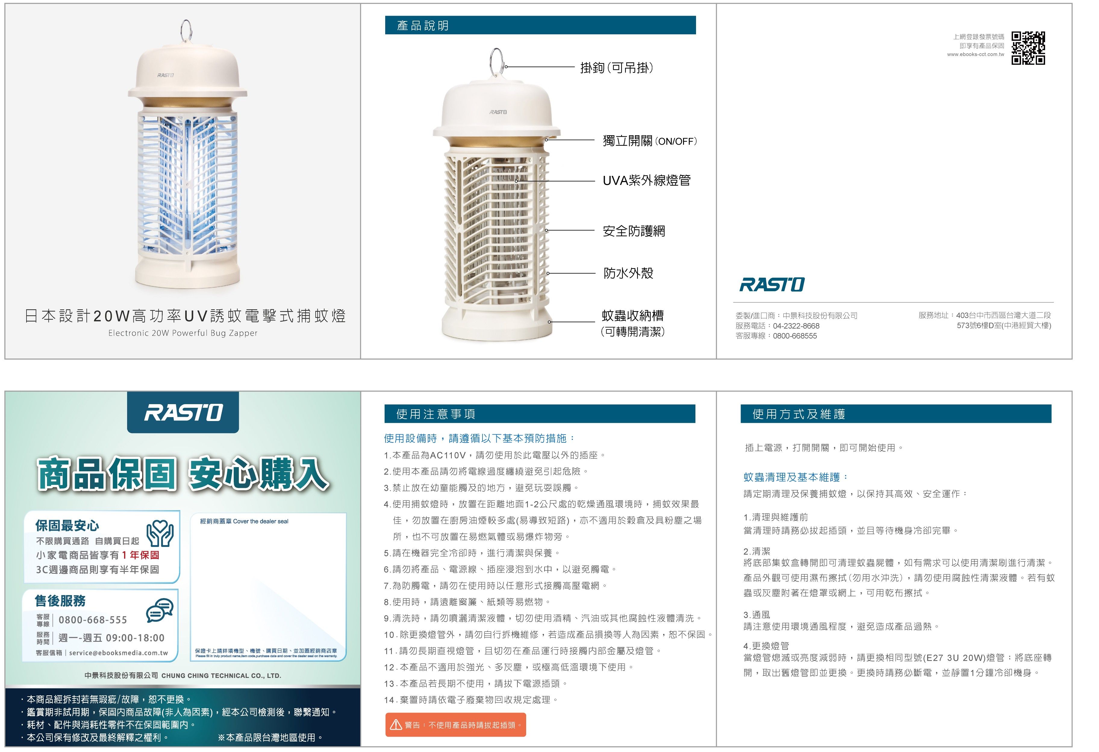 | 04 | RASTO AZ7 日本設計20W 高功率UV誘蚊電擊式捕蚊 | 2026/01/16 | |||