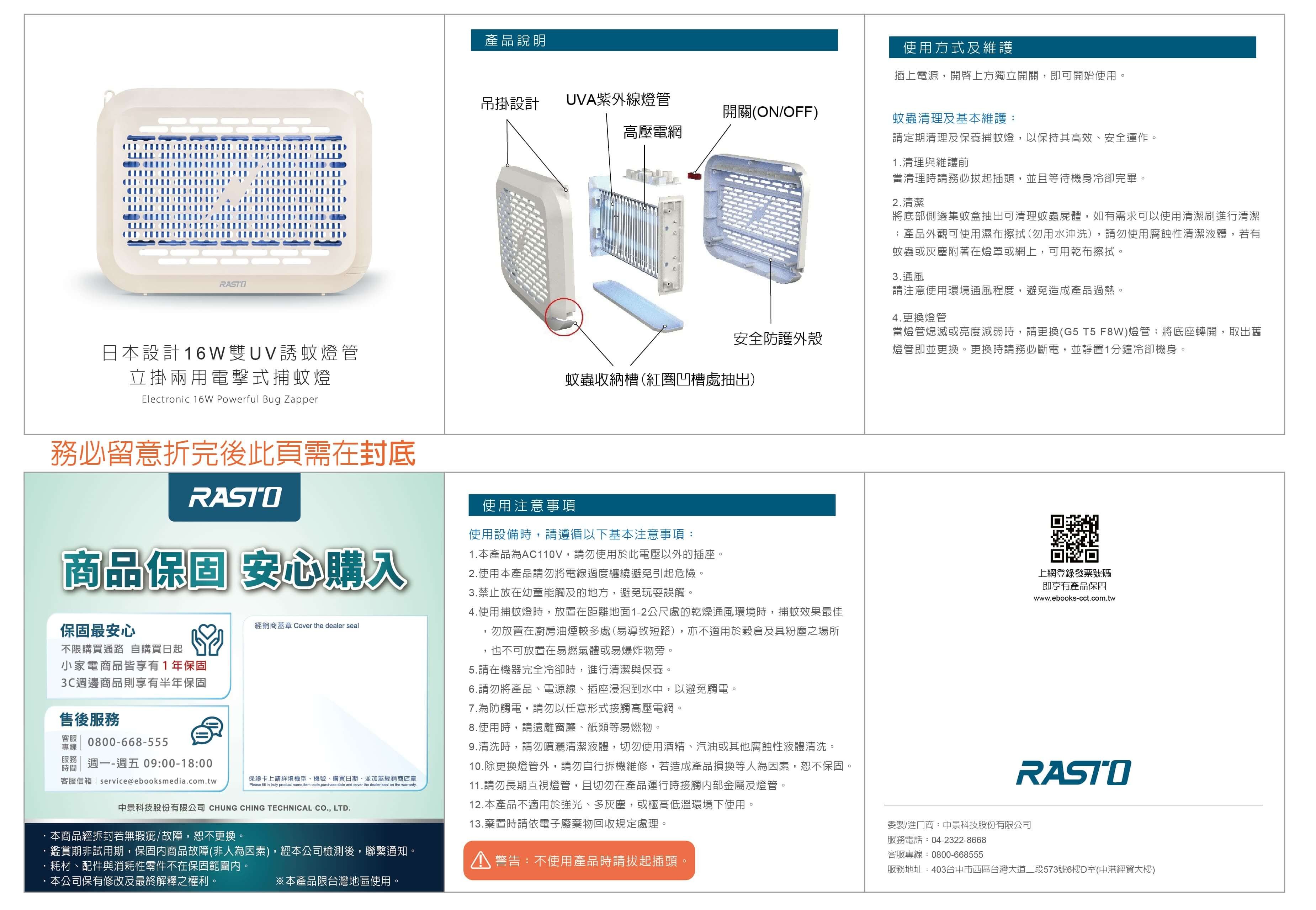 | 03 | RASTO AZ8 日本設計16W雙UV誘蚊燈管立掛兩用電擊式捕蚊燈 | 2026/01/16 | |||